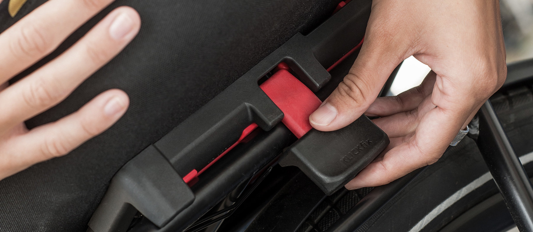 Bags, Boxes and textile baskets with UniKlip can be use on a wide variety of racks and e-bikes. Adjust to carrier width once. Set down accessory – turn levers – done !