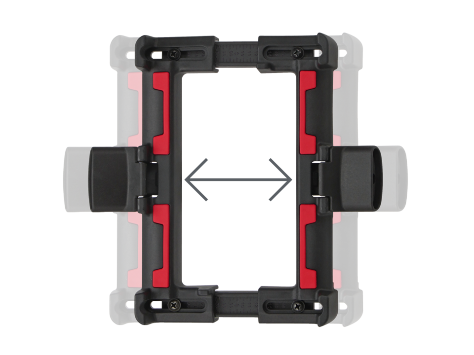 Der UniKlip kann auf Gepäckträgerbreiten von 9-16cm angepasst werden – auch für nicht parallel verlaufende Gepäckträgerstreben. Die vier Schrauben lösen und die Schienen mit Hilfe der Skala einstellen.