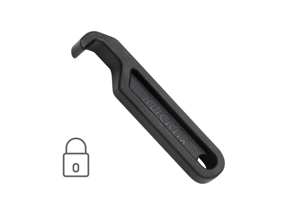 Der UniKlip ist mit einer Sicherung zur Blockierung des Klips ausgestattet. Beiliegenden Schlüssel in die rote Aussparung einstecken, nach oben schwenken und in Richtung des Klips schieben, um diesen zu blockieren.